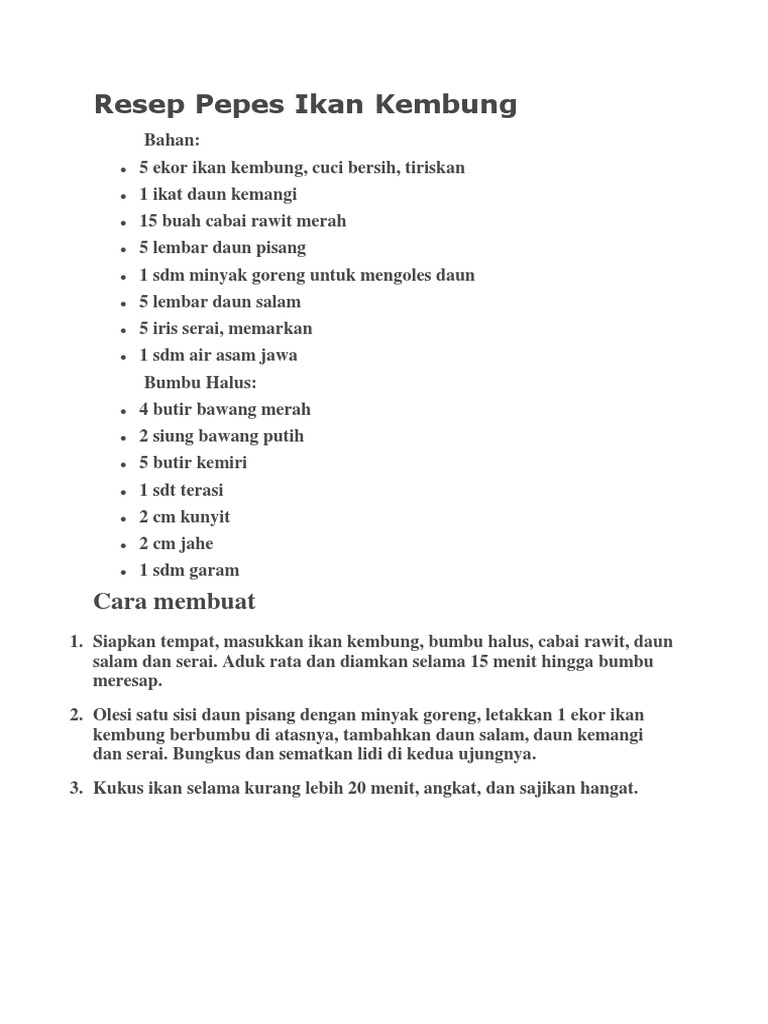 Kuahnya terasa segar dan harum dengan daun kemangi di dalamnya. Resep ikan kukus kuah asam pedas resep yang satu ini bakal meningkatkan selera makan kita lho,,, karena perpaduan rasa. Resep ikan gembung bakar teflon enaknya mintak apun. Selain memiliki banyak kandungan vitamin, cita rasa hewan ini juga sangat lezat dan bikin nagih. Sensasi pedas yang menyegarkan pada. 600 gram atau 3 ekor ikan kembung, bersihkan, cuci,tambahkan air jeruk nipis dan sedikit garam asam jawa dan air lemon secukupnya. Simak daftar obat asam lambung di apotek yang kondisi ini dapat menimbulkan gejala maag, mulai dari perut mulas, kembung, mual, panas di dada pilihan obat asam lambung naik tanpa resep di apotek. Simpan ke bagian favorit tersimpan di bagian favorit. Tumbuk halus kunyit, jahe, bawang merah, bawang putih. Masak sampai bumbu meresap dan jangan lupa koreksi rasa. Resep ikan kembung bakar dengan menggunakan bumbu bumbu sederhana. Resep pesmol ikan kembung, resep dan cara membuat masakan ikan kembung bumbu pesmol yang enak dan sedap. Ikan kembung kukus, satu resep yang menyehatkan namun dengan kelezatan yang tidak kalah dengan masakan lainnya.